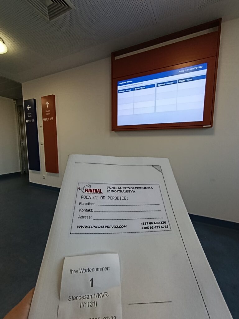 Sprovodnica Nemačka (Leichenpass) – dobijamo na Friedhöfe Verwaltung.